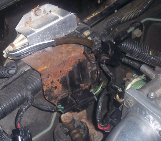 It's also possible to plug the injector resistor pack into the ISC's connector. They are both identical 6-pin connectors and are located close enough to each other in the engine compartment to be confusing. If you do swap these, the injector resistor pack will get very hot with the key on and, of course, the engine will certainly not start. You can see a picture of this wired incorrectly below. Note the black wire with yellow stripe on the connector plugged into the ISC. If you refer to the 1G MFI schematic, you'll see that there is no black wire with yellow stripe on the ISC connector. But there is one on the injector resistor pack connector.