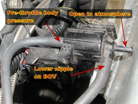 Basically, you intercept the pressure going to the bottom of the BOV so that at high boost, the BOV only sees pressure on the top, forcing it to stay closed. But when you lift off the throttle, pressure is again applied to the bottom to help open the BOV more quickly.
